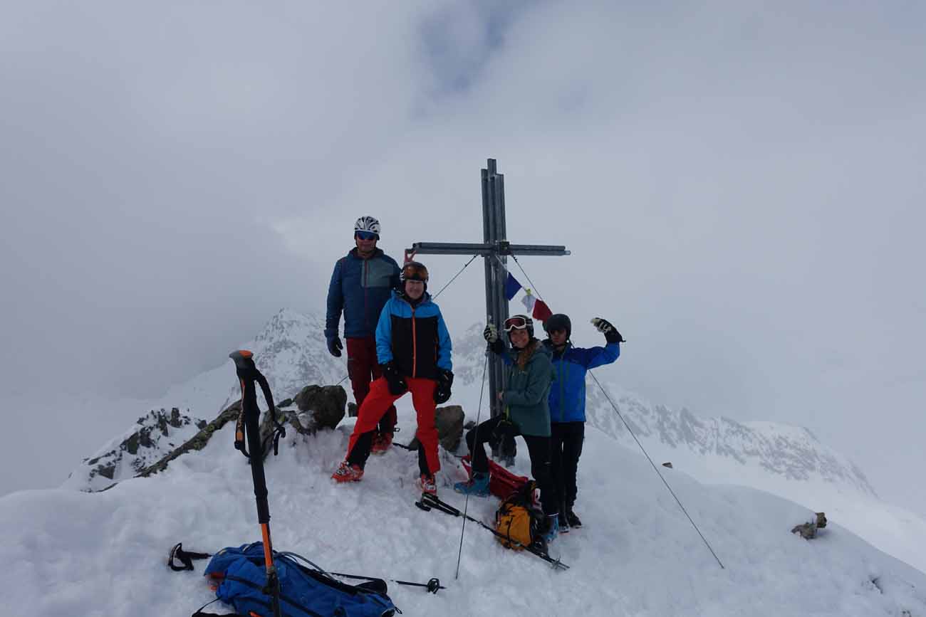 Am Montag gelang allen die wunderbare Skitour über den Längentaler Ferner auf den Längentaler Weißenkogel 3.218 m. Bei guter Sicht genossen wir die mittelsteilen mit Pulverschnee bedeckten Nord- und Osthänge.